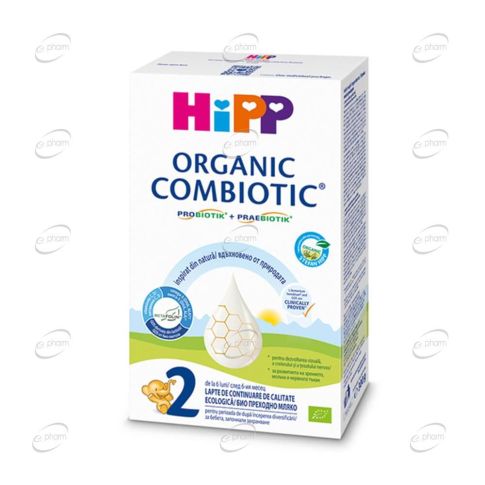 ХИПП КОМБИОТИК 2 Адаптирано мляко е мляко за деца над 6-месечна възраст. Може да давате млякото на детето си за закуска, между отделни хранения или преди сън. Формулата позволява на подрастващото дете да получи нужните градивни елементи. Хип Органик Комбиотик 2 Адаптирано мляко за малки деца 6M+ се отличава със специалната си формула с пробиотични бактерии – млечо-кисела култура, първоначално изолирана от майчино мляко, както и с пребиотични влакнини, подхранващи пробиотиците и допринасящи за баланса на стомашно-чревната флора. Продуктът съдържа още галакто-олигозахариди - от лактоза, както и незаменимите омега-3 мастни киселини (ALA), осигуряващи нормалното развитие и функция на мозъка и нервните клетки, за здравословния растеж на детето. Формулата включва още Metafolin, осигуряващ на организма фолат, както и витамините A, C и D за висок имунитет. Адаптираното мляко е лесно за храносмилане и засища детето. Произведено е от ценно биологично мляко и органични съставки.