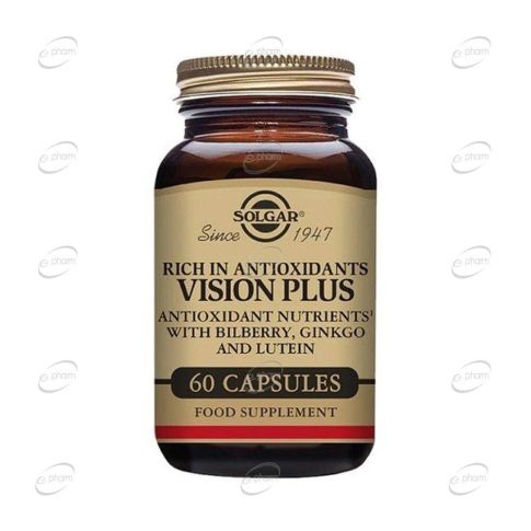 Хранителна добавка под формата на капсули, която подобряване на зрението и защита на очите. Vision Plus е антиоксидантна формула, която включва много витамини и минерали и помага за минимизиране на щетите, причинени от свободните радикали. Свободните радикали се произвеждат от тялото, когато дишаме, смиламе храната, спортуваме или дори спим. Те възникват естествено, тъй като са създадени от емоционален стрес, UV светлина, радиация и замърсяване на околната среда. Свободните радикали увреждат тялото, като причиняват увреждане на клетките, намаляват защитата срещу болести и поставят тялото в състояние на „стрес“. За смекчаване на ефектите на свободните радикали е необходимо балансиране с антиоксиданти. Най-важните антиоксиданти включват: бета-каротин, витамин С, витамин Е, цинк, селен и съставки, открити в някои растения, като куркума и гинко билоба. Антиоксидантите се получават чрез ядене на здравословни храни в балансирана диета, но добавките може да са необходими за максимален прием. Специалната формула Vision Plus съчетава билковия продукт Гинко билоба с витамини C, A и E, както и минерали като цинк и селен, всички от които имат мощни антиоксидантни свойства. Включва също боровинки и лутеин. Vision Guard Plus е подходящ за стриктни вегетарианци и се приемат 2 фитокапсули дневно, които съдържат различни източници на аминокиселини, осигурявайки холистичен подход към цялостното благосъстояние.